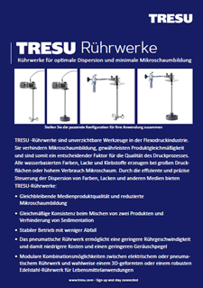 TRESU Rührwerke sind unverzichtbare Werkzeuge in der Flexodruckindustrie, da sie Mikroschaumbildung bewältigen, die Produktgleichmäßigkeit gewährleisten und einen entscheidenden Beitrag zur Qualitätssicherung des Druckprozesses leisten.